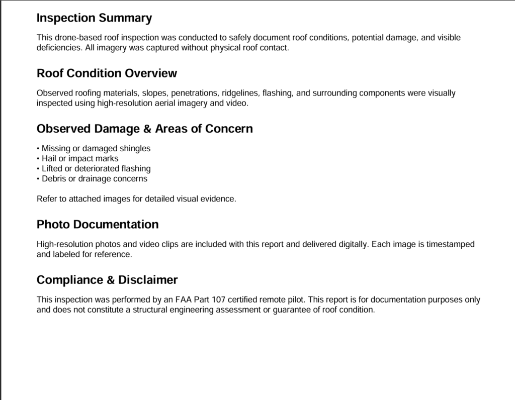 Professional aerial roof assessments that capture high-resolution, insurance-ready evidence—without anyone climbing the roof.